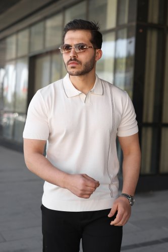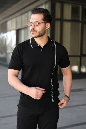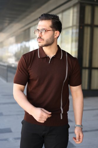 Erkek Çizgi Detaylı Yakalı Triko Tişört