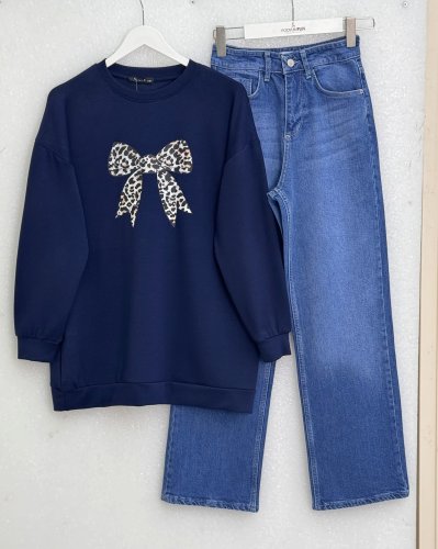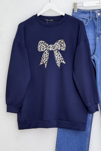 • Yuvarlak Yaka Fiyonk Baskılı Salaş Oyşo Tunik Laci