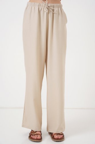 Geniş Paça Keten Pantolon 6735 Krem