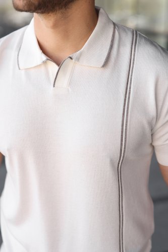 Erkek Çizgi Detaylı Yakalı Triko Tişört