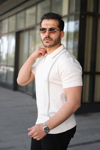 • Erkek Çizgi Detaylı Yakalı Triko Tişört