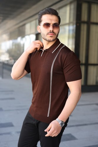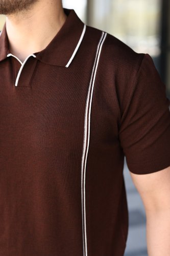 • Erkek Çizgi Detaylı Yakalı Triko Tişört