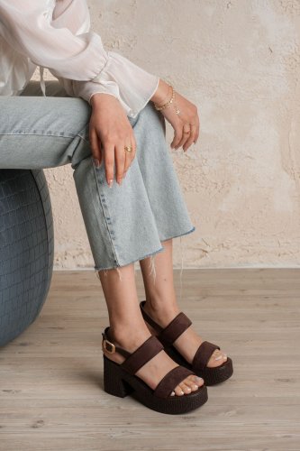 • Wowi Kahverengi Süet Topuklu Sandalet